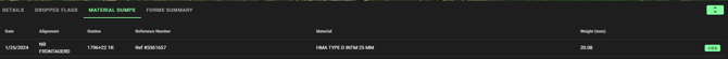 If you have an integration with OnStation and FleetWatcher, your Material Dump data will display here in the "Material Dumps" menu.