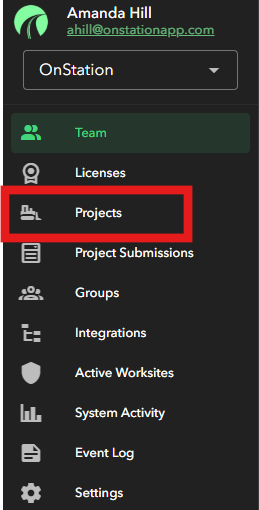 - Within the Management Portal click on the "Projects" menu