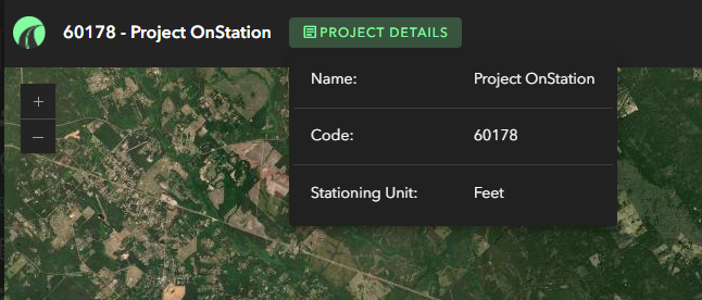 The "Details" menu is available at the top of the Data Portal window. Select , this will display the Name, Code, and Stationing Unit..