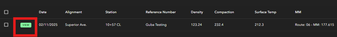 If you have an integration with OnStation and TRansTech, your Density Test data will display here in the "Density Test" menu.
