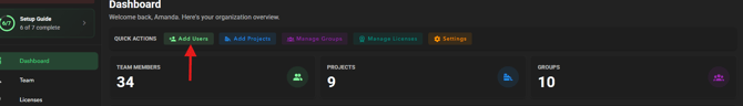 2. From the Organization Dashboard, Select Add User