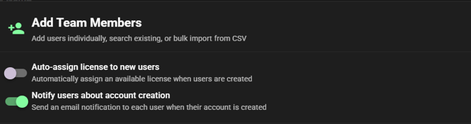 4. Choose whether to Notify a user upon their addition to your organization