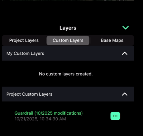 - Users who have had this Custom Layer shared with them will see this under the "Custom Layers" -> "Project Custom Layers" . See example below