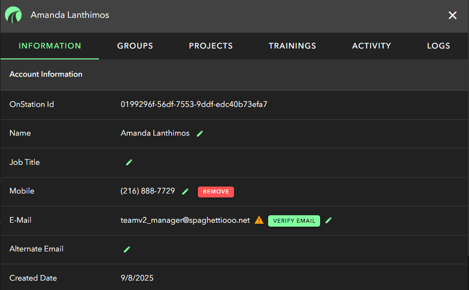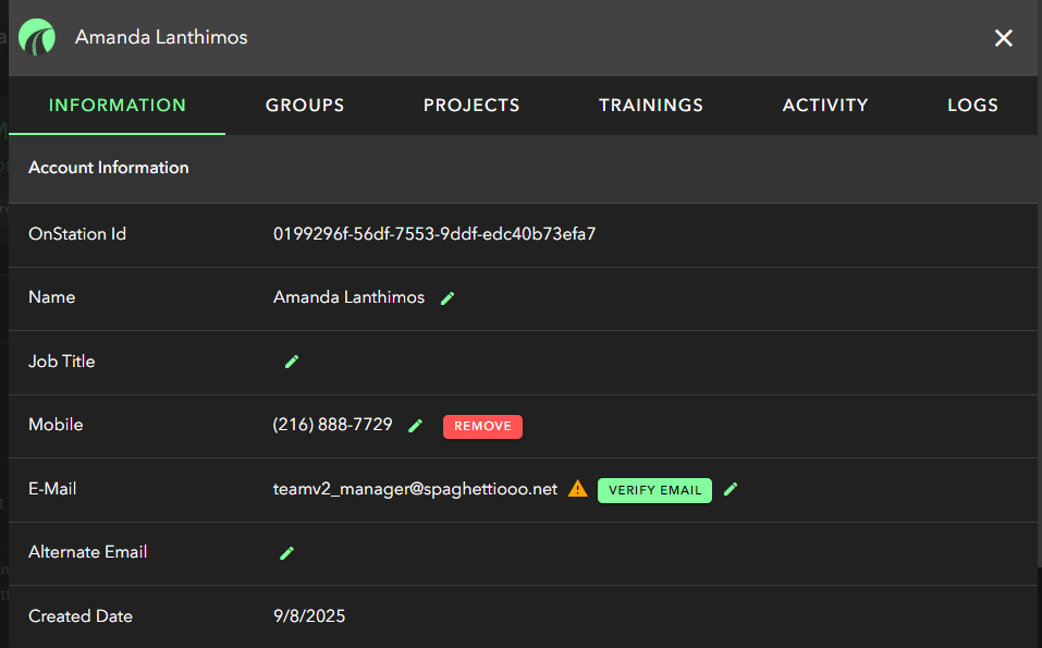In the OnStation POrtal users ca make edits to their profiles. Administartors and user managers can make edits to member sof their organization.