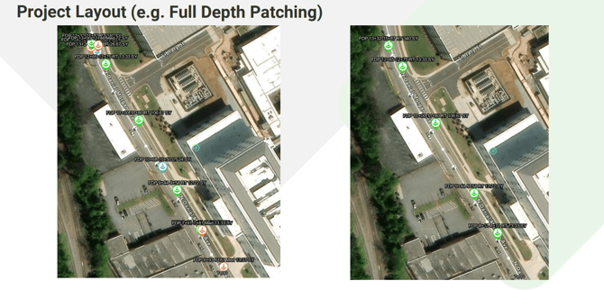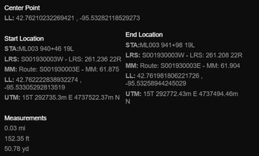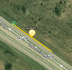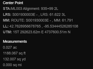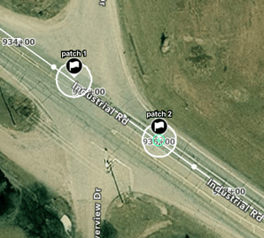 In the above photos you can see how a customer used the flag title to identify the measurement location for the scheduled work. With enhanced measurement, each flag could be dropped as a shape as in the image below, providing center point, area, and stationing information.