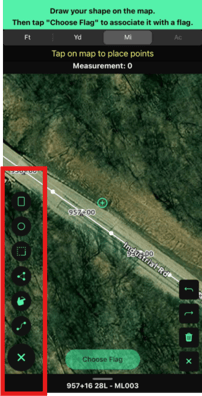 We have enhanced our measuring tool to include drawing polygon shapes and lines. Not only can you draw these shapes and associate a flag with all the features of an OnStation flag (photos, tags, forms, mark as hazardous) AND share them, but you also have start and stop points, area of shape, and center point of the shape listed in the flag details. Follow the steps below to create shapes in the app or check out the video demonstrations far below.