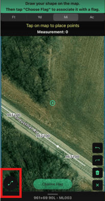 - Notice the line drawing icon that appears in the bottom left corner, select this to open the measurement options.