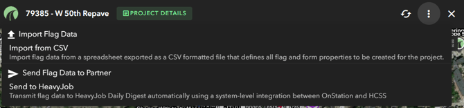 - In the top right corner of the Dropped Flags Project Menu there is an additional option to export in bulk.
