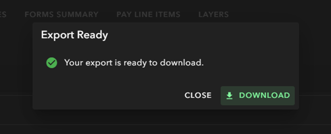 Keep the export window open. When the export finishes, a download link will appear. Click it to download the zip file.