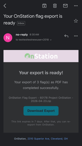 OnStation now supports bulk exporting flags as PDF files directly from the Portal. No more exporting one flag at a time. No more workarounds. Just select what you need and export everything in one go.