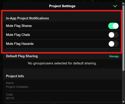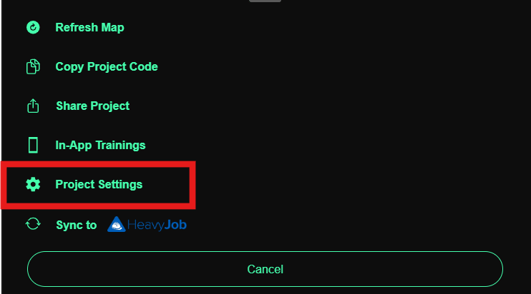 - After selecting the i icon, the project information menu appears at the bottom of your screen. Select Project Settings