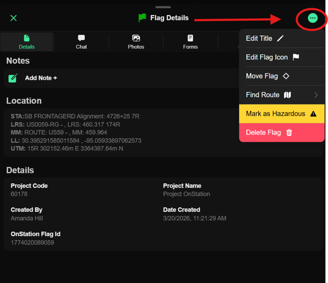 - Mark as Hazardous- Mark and Unmark the flag as Hazardous. A hazardous designation alert's other users to the flags status