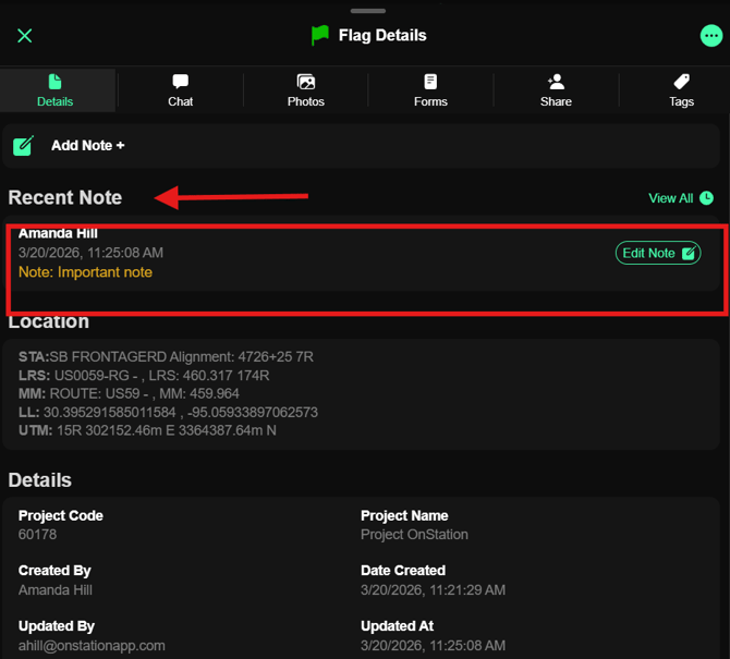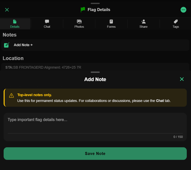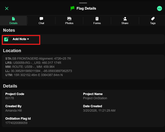 Tap Add Note + to add a note to the flag and share with others who view the flag.