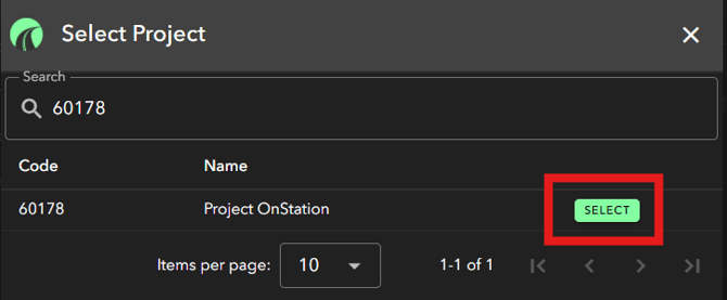 - Use the "Select Project" window to search for the OnStation Project you wish to revise.
